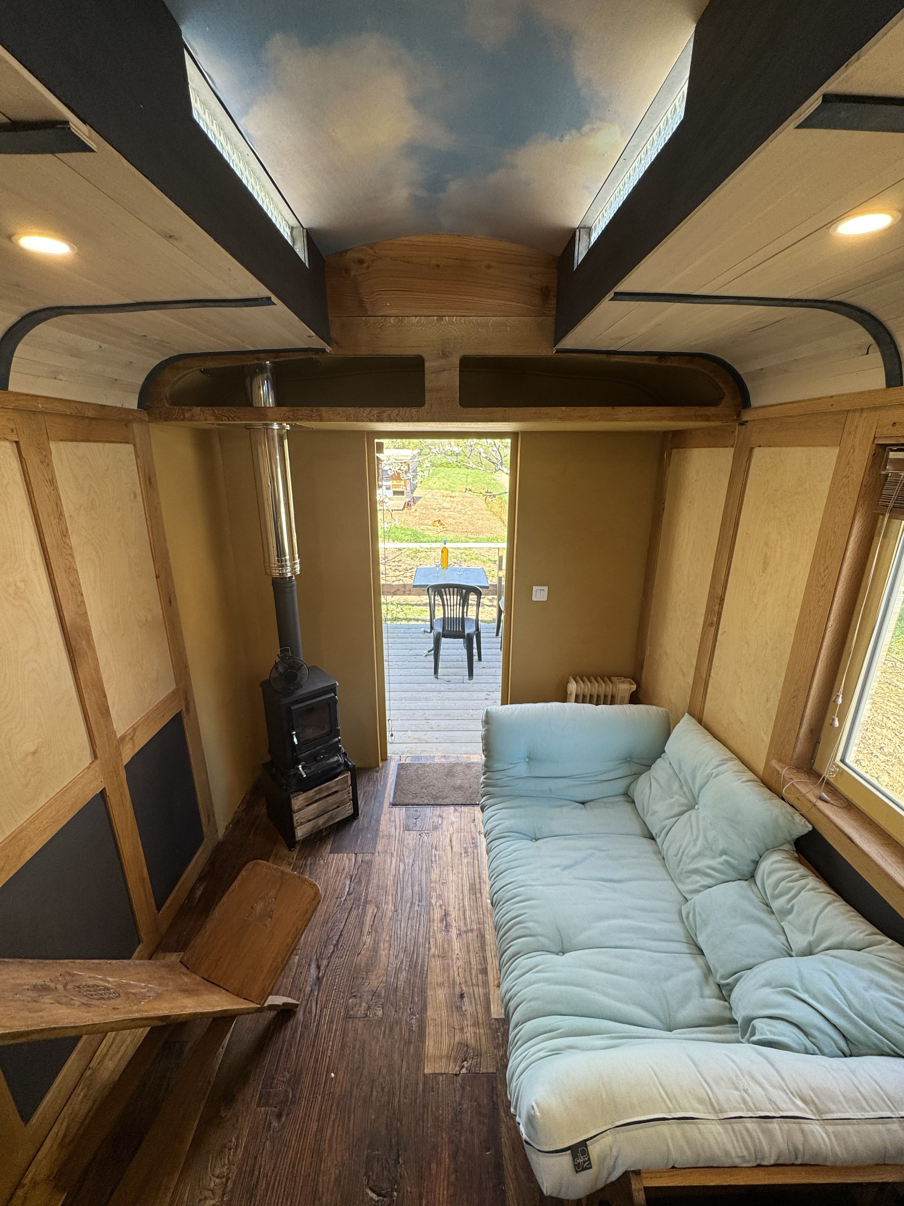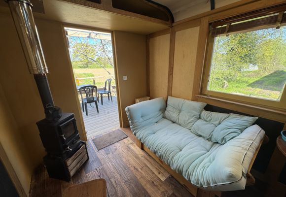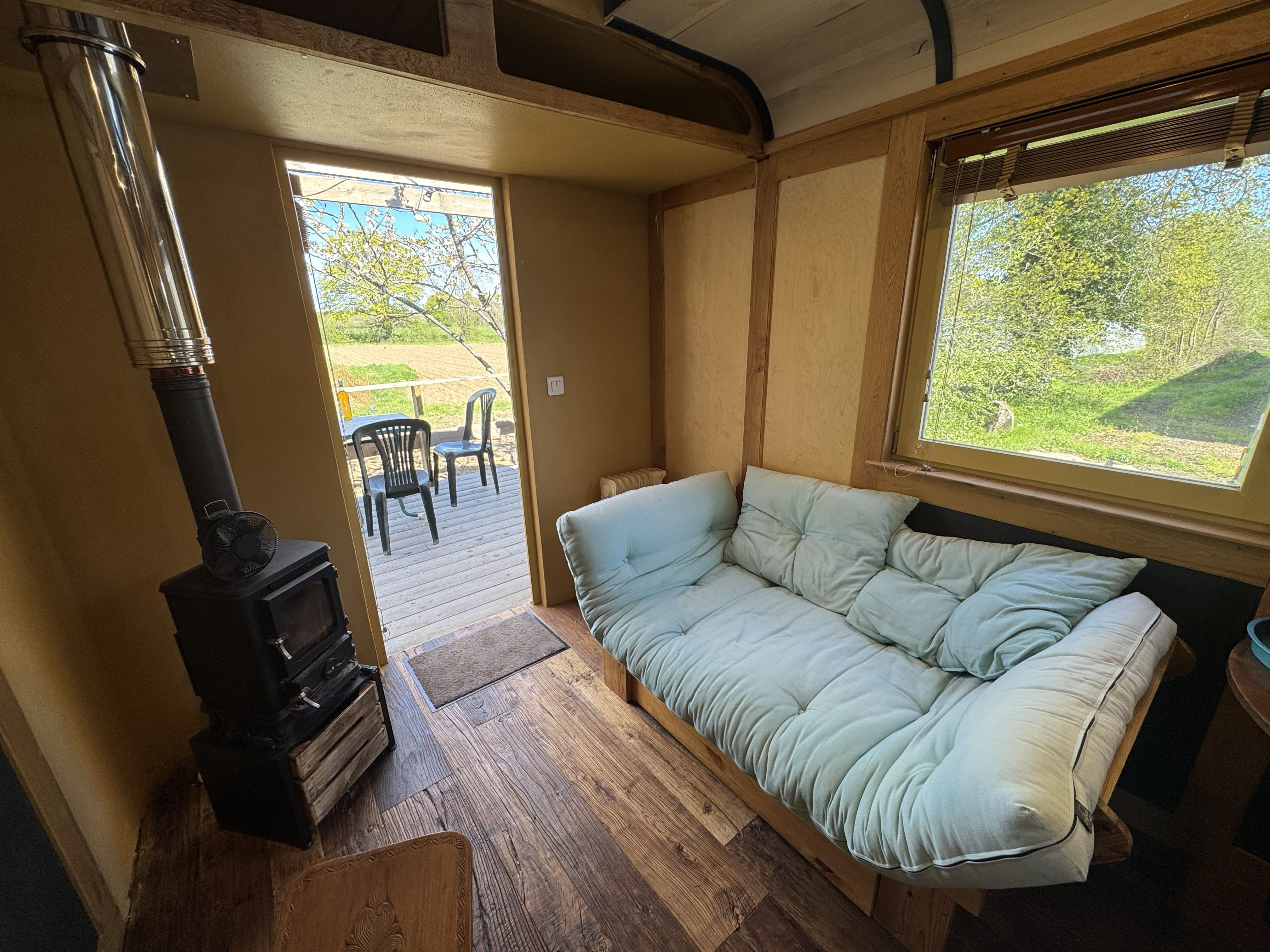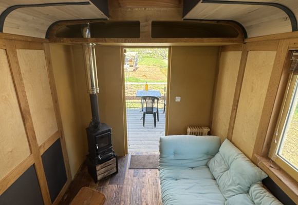 Discover our gipsy caravan, lovingly converted by craftsmen, with quality joinery and fully equipped with toilet, kitchen, bathroom and private shower. Situated in a peaceful setting, it offers an uninterrupted view of the market gardens, providing a peaceful setting. Ideal for a couple or a small family, this caravan is a haven of peace for a unique and rejuvenating stay! Disconnection guaranteed!