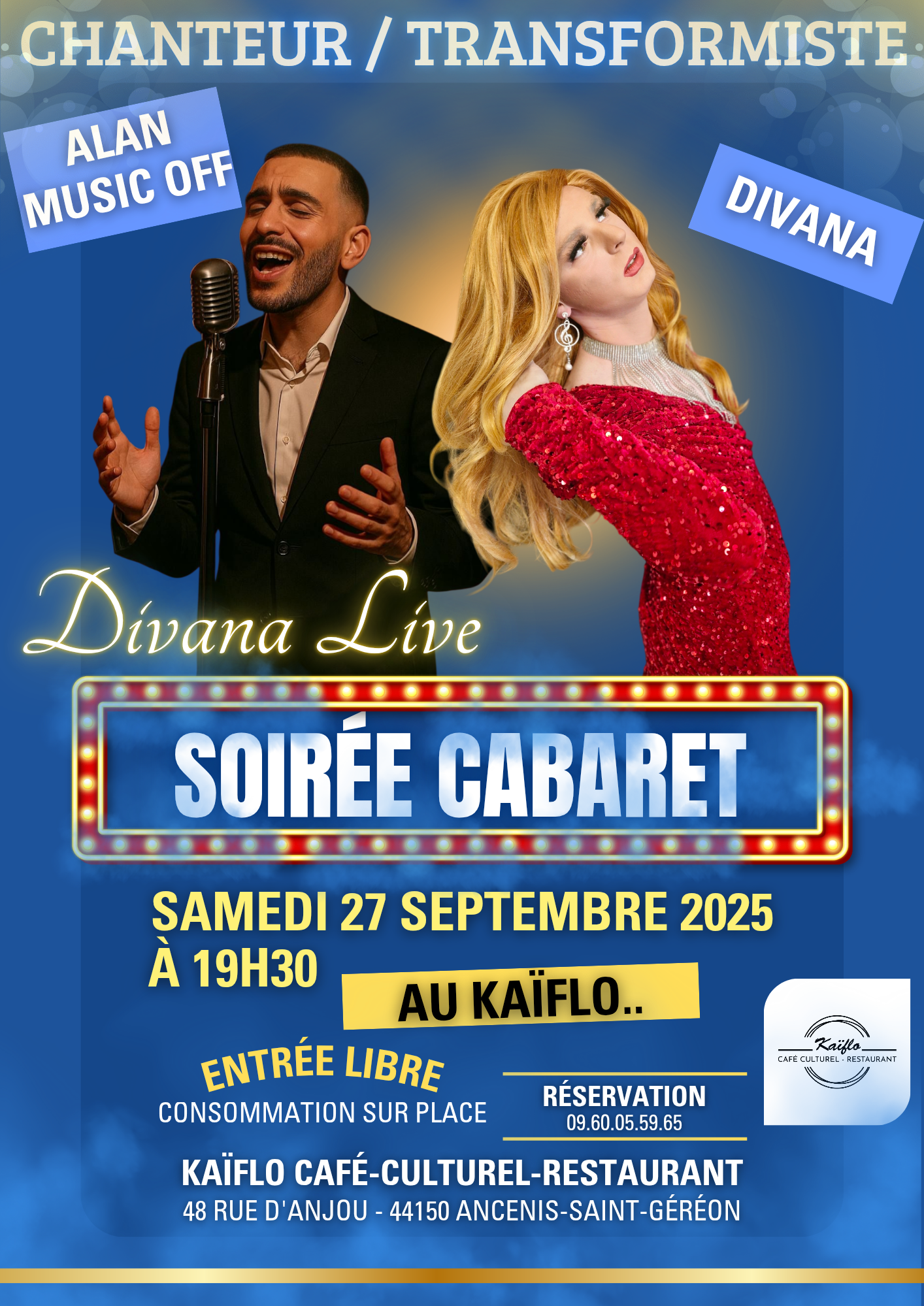 Kaïflo is a cultural café and restaurant located in Ancenis-Saint-Géréon town centre, offering a variety of shows and events, where you can eat, drink and discover the souls of artists.