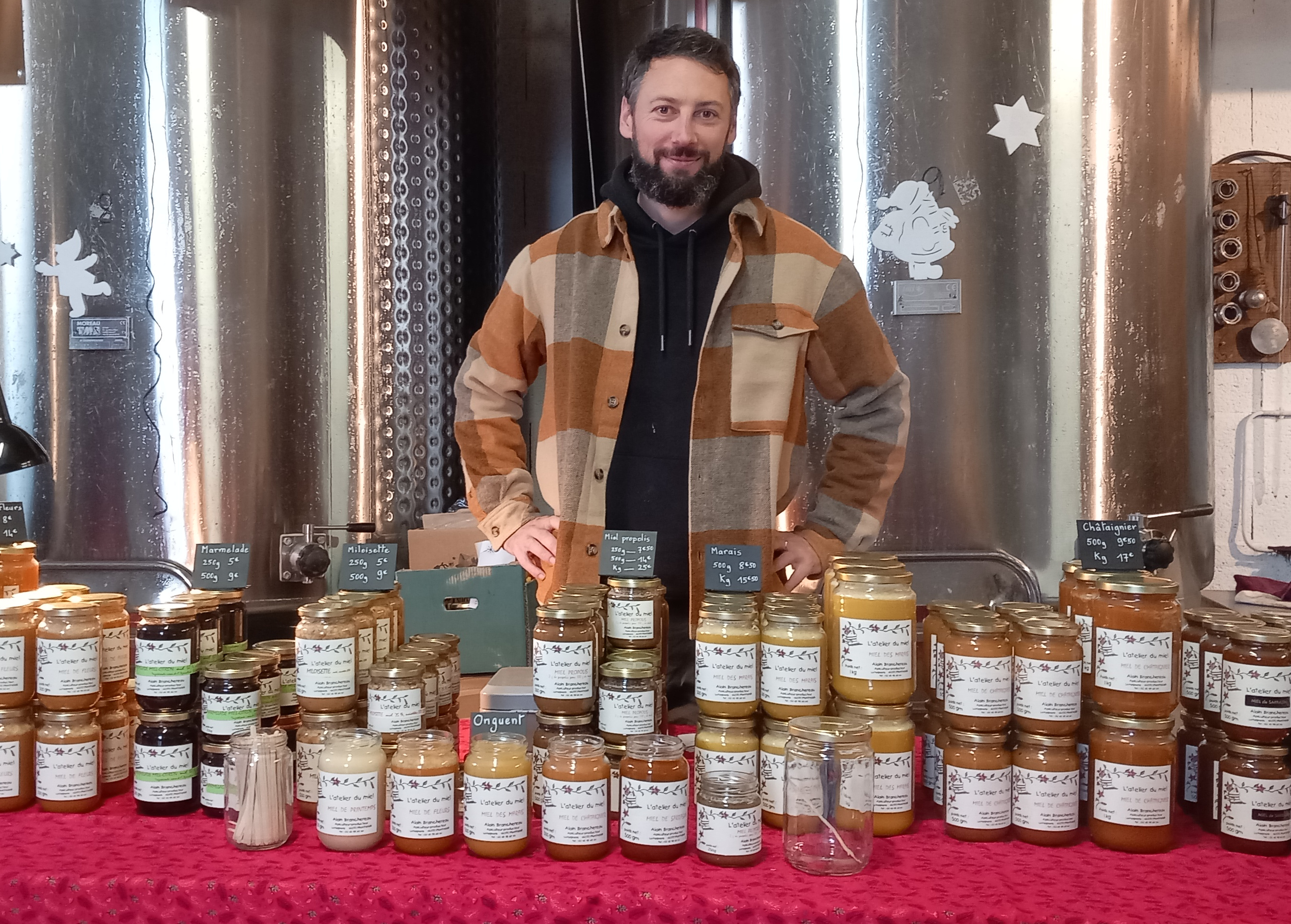 L’atelier du miel propose une gamme de cinq miel issus de la flore locale et des produits transformés artisanaux (pain d’épices, miel à la propolis, miel-noisettes, marmelade miel-citron…)