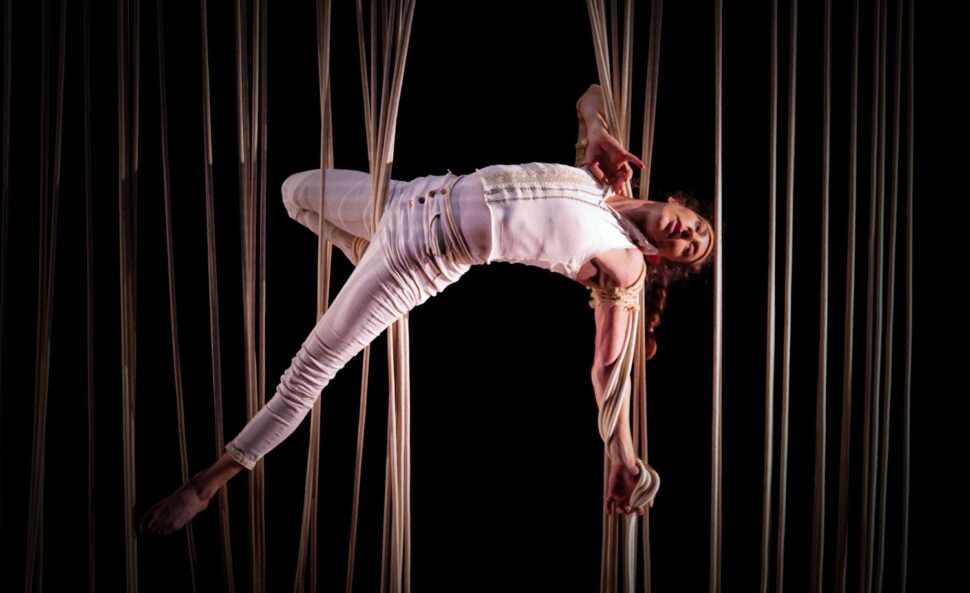 Les interprètes mêlent cirque, danse, musique et création textile pour parler de l’existence, de la mort, de la destinée…