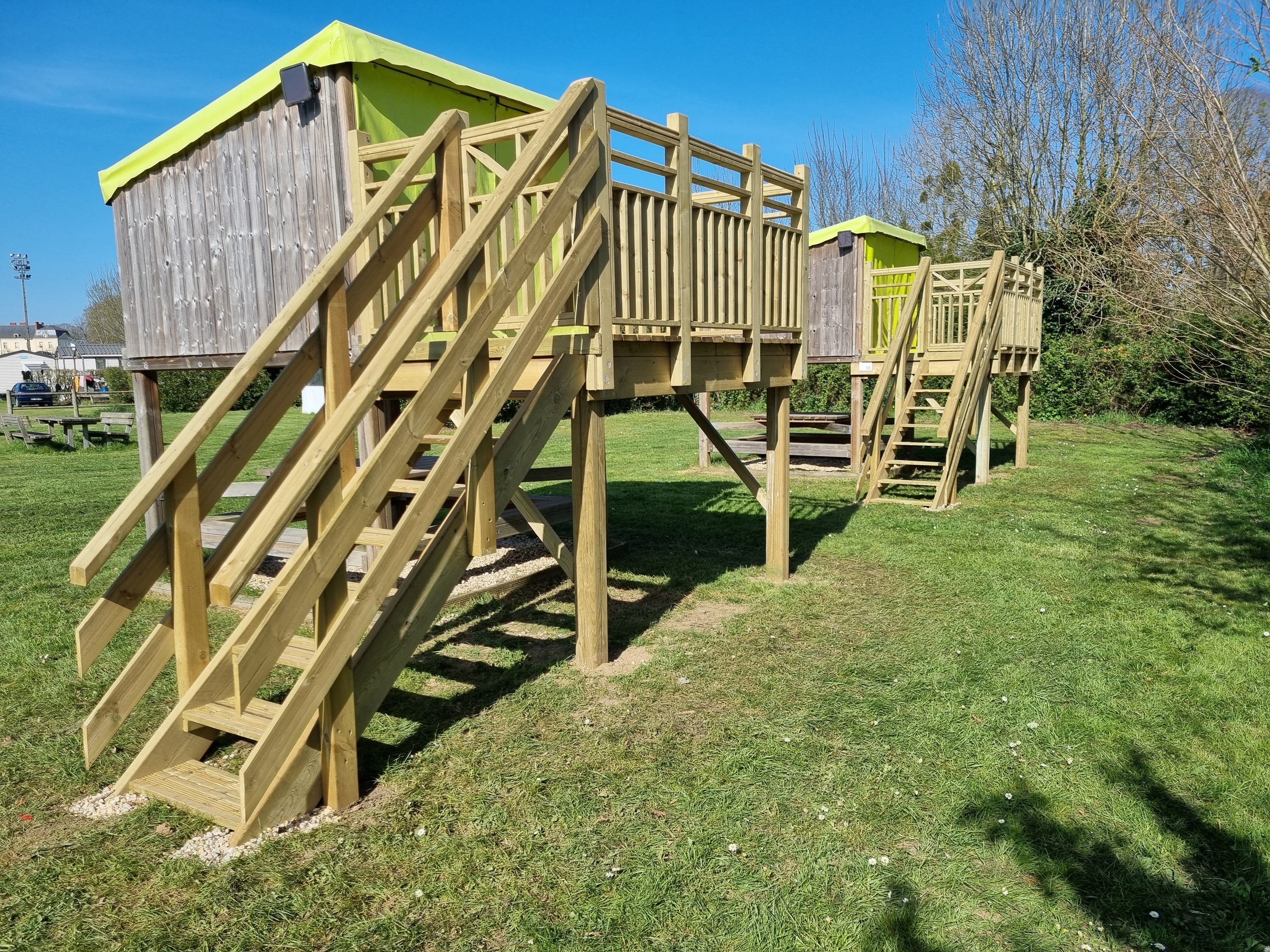 Petite cabane en hauteur de 4,8m², vous y trouverez un espace couchage fermé équipé d’un lit double ou de deux lits simples (+ couettes et oreillers) avec vue sur la Loire et d’une table de pique-nique juste en dessous.