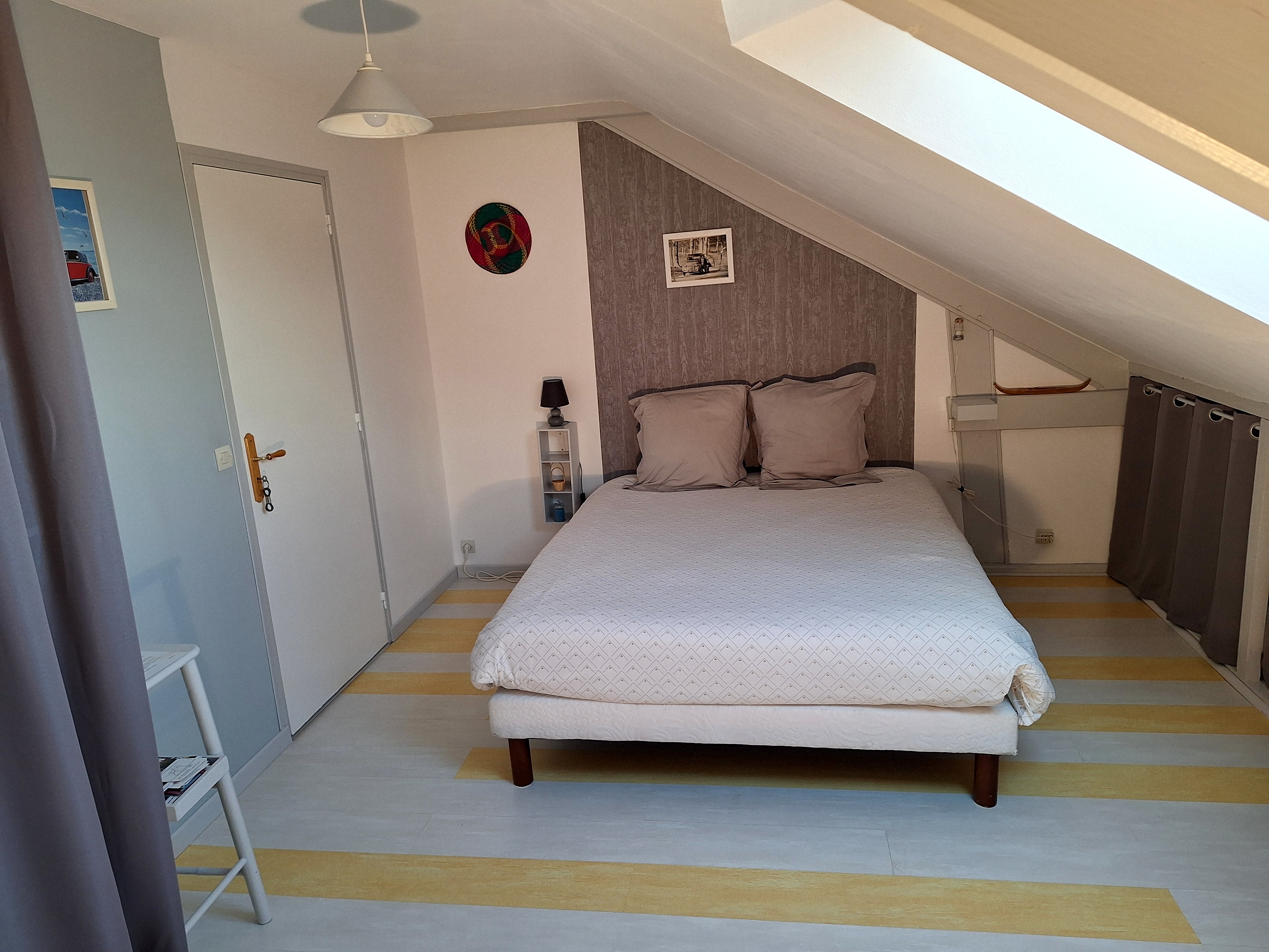 Grand lit 160 X 200 de très bonne qualité par chambre.
