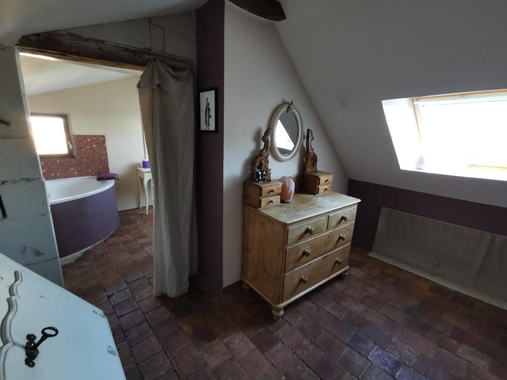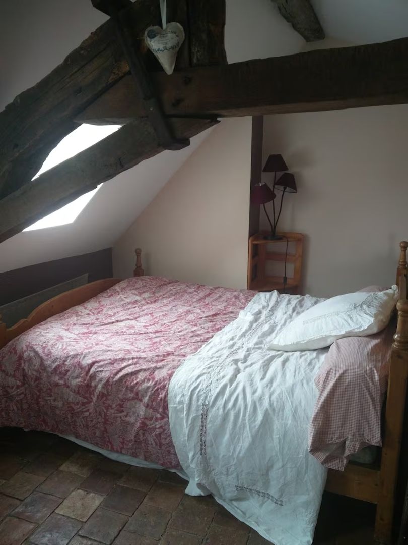 Deux chambres avec un lit pour deux personnes et sa salle de bain adjacente dans une vieille maison du XVIIe siècle sur 3 étages face à l’Église et la Loire.
