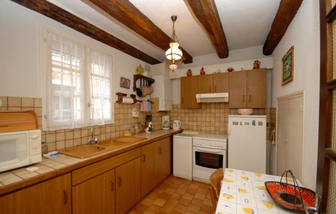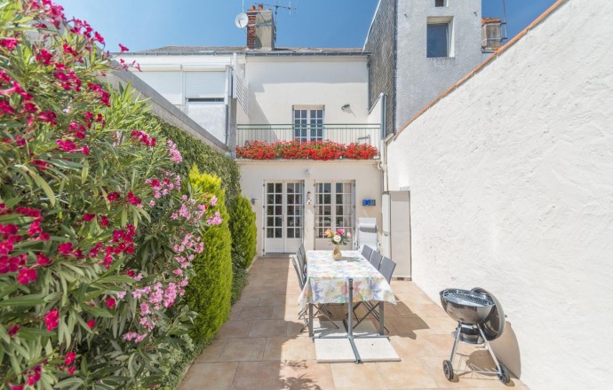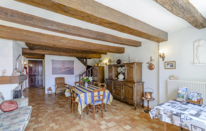 Au rez de chaussée, cuisine aménagée, grand séjour avec poutres anciennes et cheminée, toilette. Cour attenante close de 35 m²agrémentée de lierres et de lauriers roses, donnant directement sur la Loire. Salon de jardin, barbecue, jeux petits enfants.